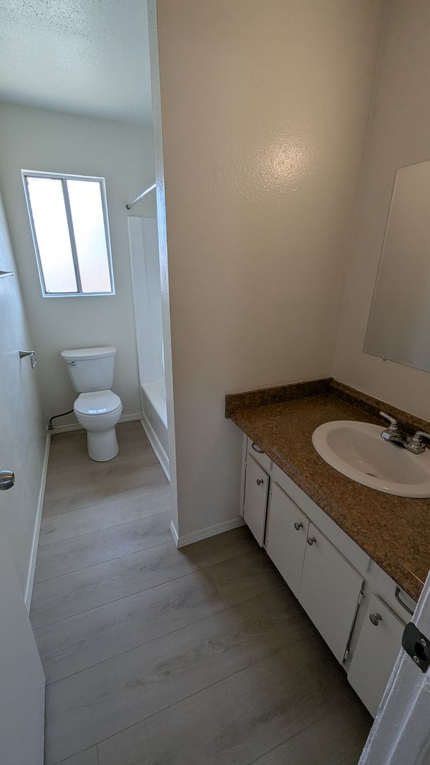 This remodeled 2 bedroom 1 bath home features newer laminate flooring & paint throughout. Living & fully remodeled kitchen. Central A/C & heating, covered parking, onsite laundry room and enclosed backyard. Water, Sewer, & Trash is included in the rent.